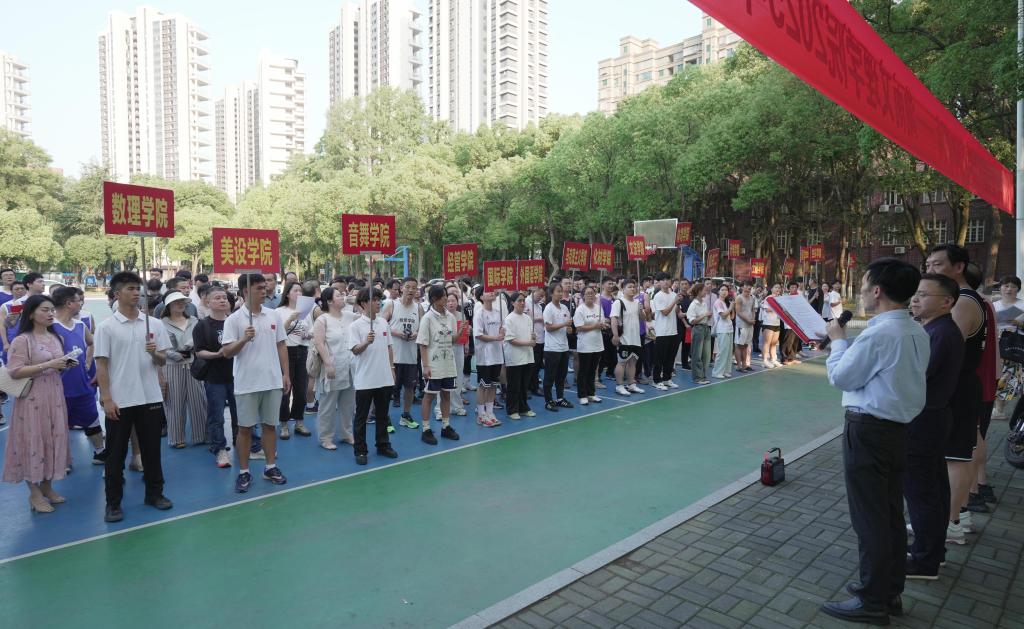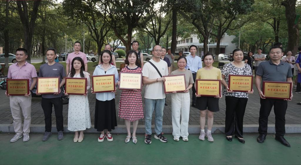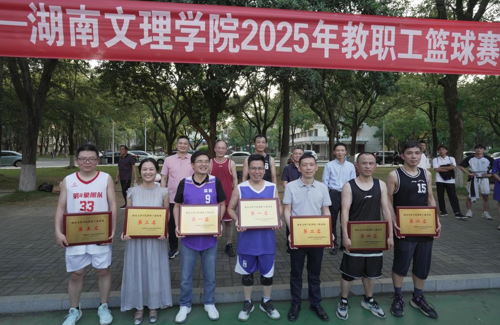 本网讯(文字 袁勇军 图片 韩康桥)6月5日下午5点,湖南文理学院2025年教职工篮球赛闭幕式在南院篮球场举行。学校党委副书记、校长刘宇文,党委委员、副校长、工会主席刘春晖,党委委员、纪委书记郭文超出席闭幕式。学校工会工作人员、各分工会19支代表队成员、全体裁判员参加闭幕式。校工会常务副主席刘安吾主持闭幕式。